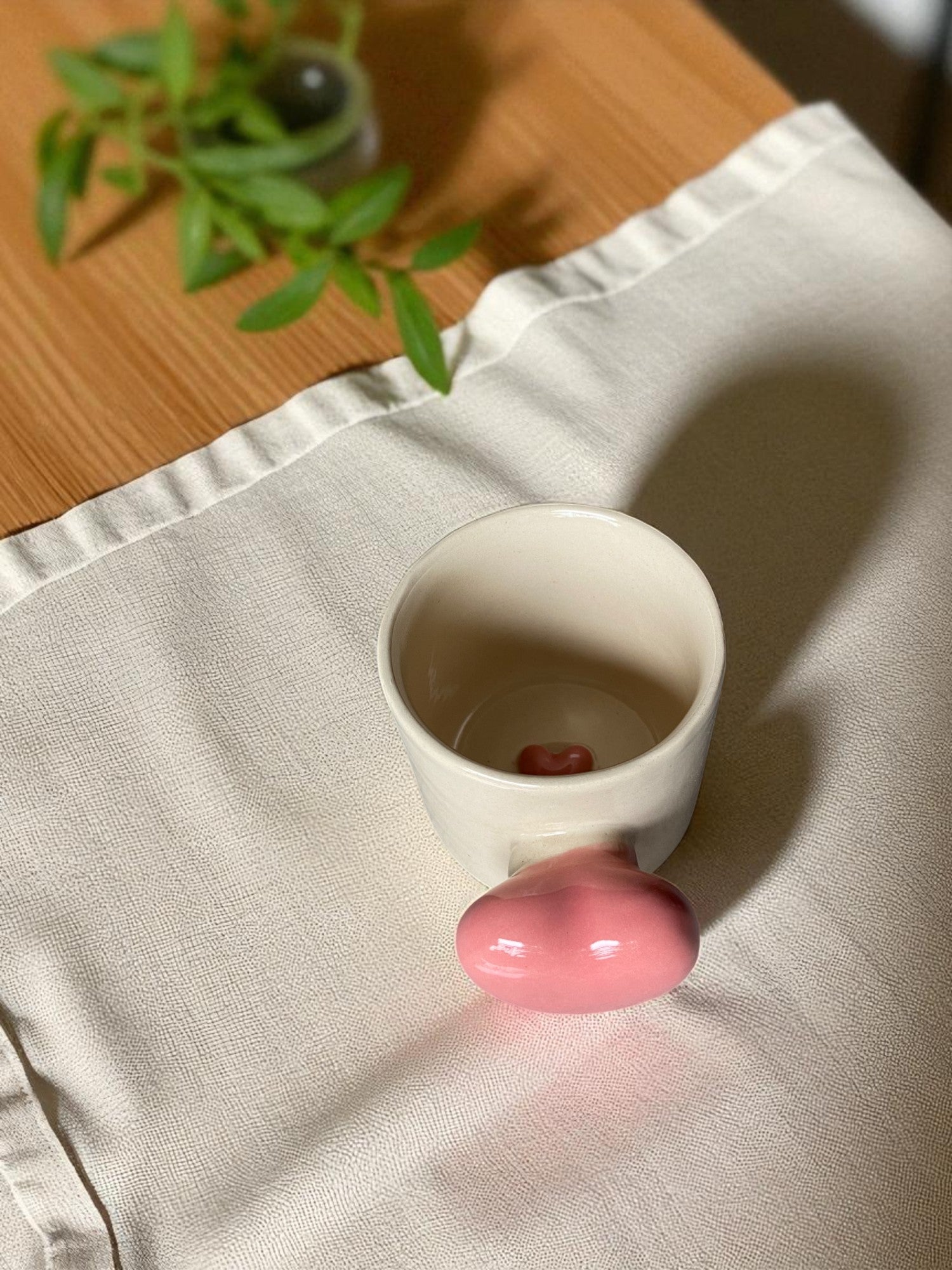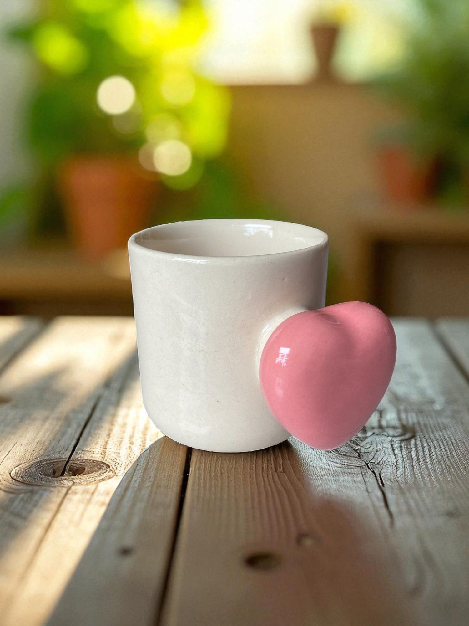 - DESIGN FEATURE: Unique ceramic mug with a charming pink heart-shaped handle, perfect for adding a touch of whimsy to your daily beverage routine