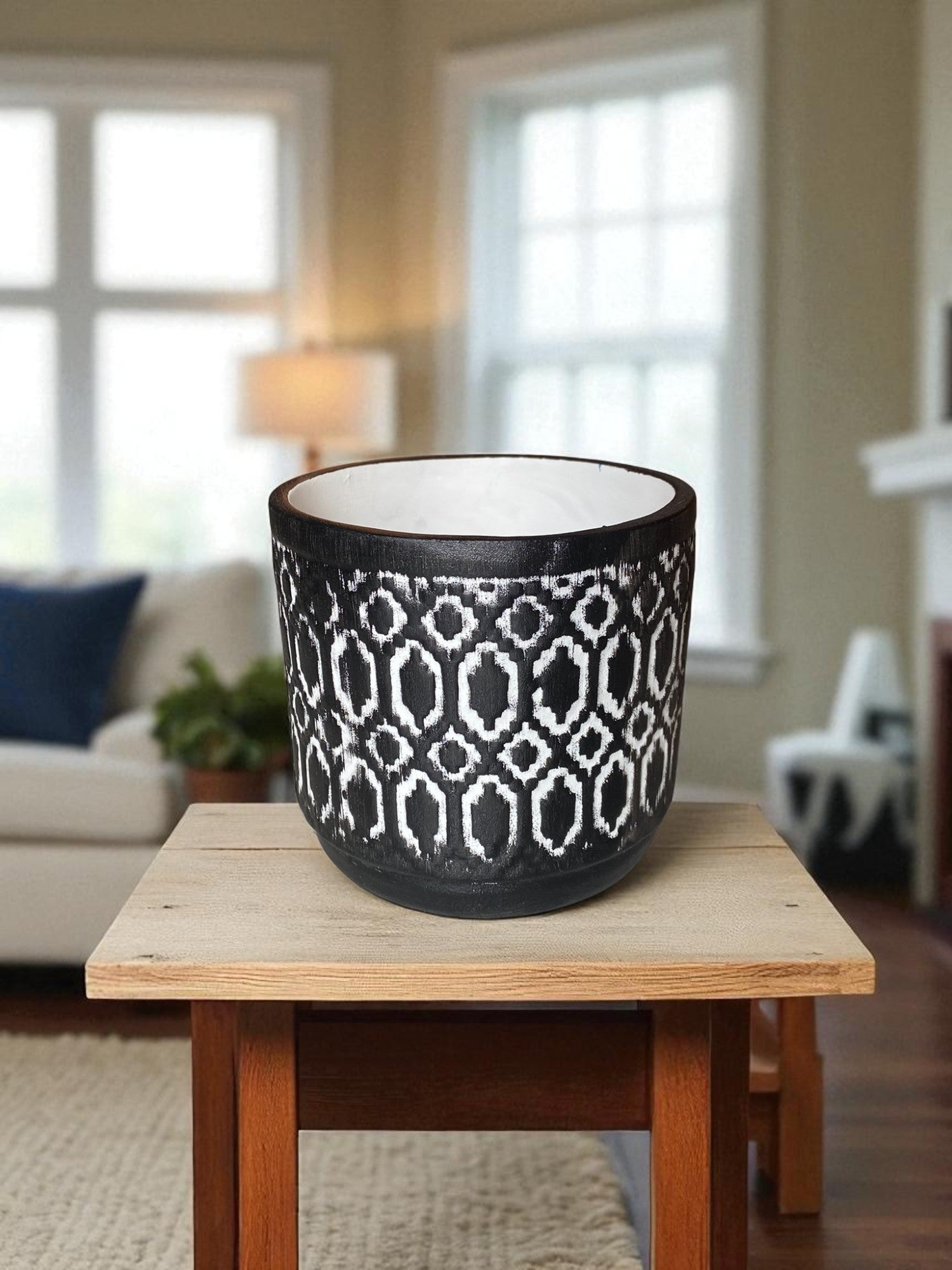 Decorative Ceramic Planter Pot with Black and White Geometric Pattern