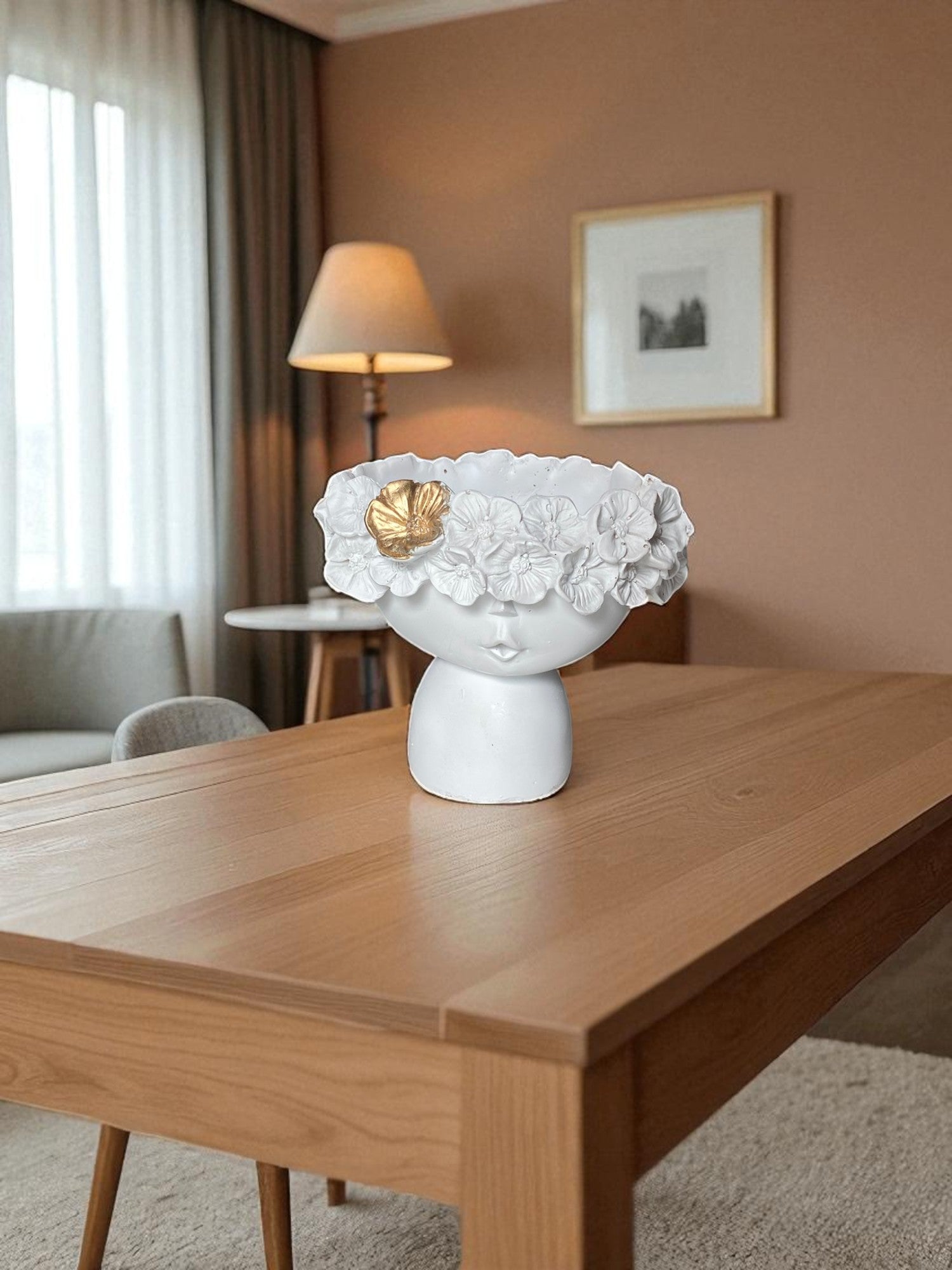 Decorative Girl Face Planter with Floral Crown and Gold Accent